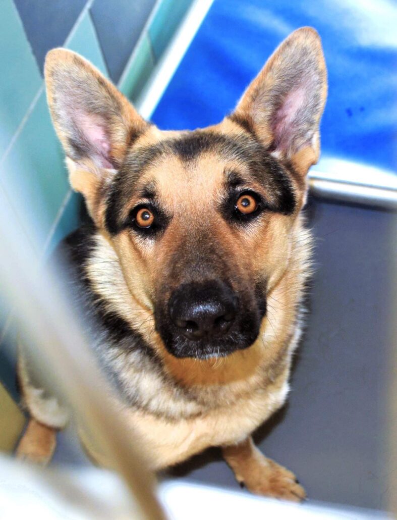 This gorgeous German shepherd’s plight is extremely urgent. She has been showing signs of kennel stress, and that has become an automatic death sentence for the dogs who are not lucky enough to leave by the front door – either with a rescue organization, a foster parent or to a new adopter.