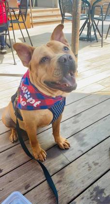 “Do you hear that happy snorting? Watch out – Hendrix is trotting over to meet you! This four-year-old dude found his way to the Kentucky Humane Society when a rural shelter ran out of space. With honey-colored fur and hazelnut-colored eyes, 57-pound Hendrix is the perfect companion to cozy up with on a cool autumn day! Sadly, as luck would have it, we discovered this happy fellow had heartworms. We treated Hendrix and he had along road to recovery, but he is now completely heartworm free! Hendrix can be quite the explorer, but after he is finished exploring outside – you can often find him lounging around like a rotisserie chicken. You might say this snorting guy looks like a “Pig” Bull Terrier, but Hendrix actually seems to show some characteristics of a Staffordshire Terrier and a Shar Pei. He’s incredibly smart, immensely loyal, adorably chubby (check out those wrinkles), and socially experienced! Hendrix also reminds us of our favorite childhood game: hungry, hungry hippos!