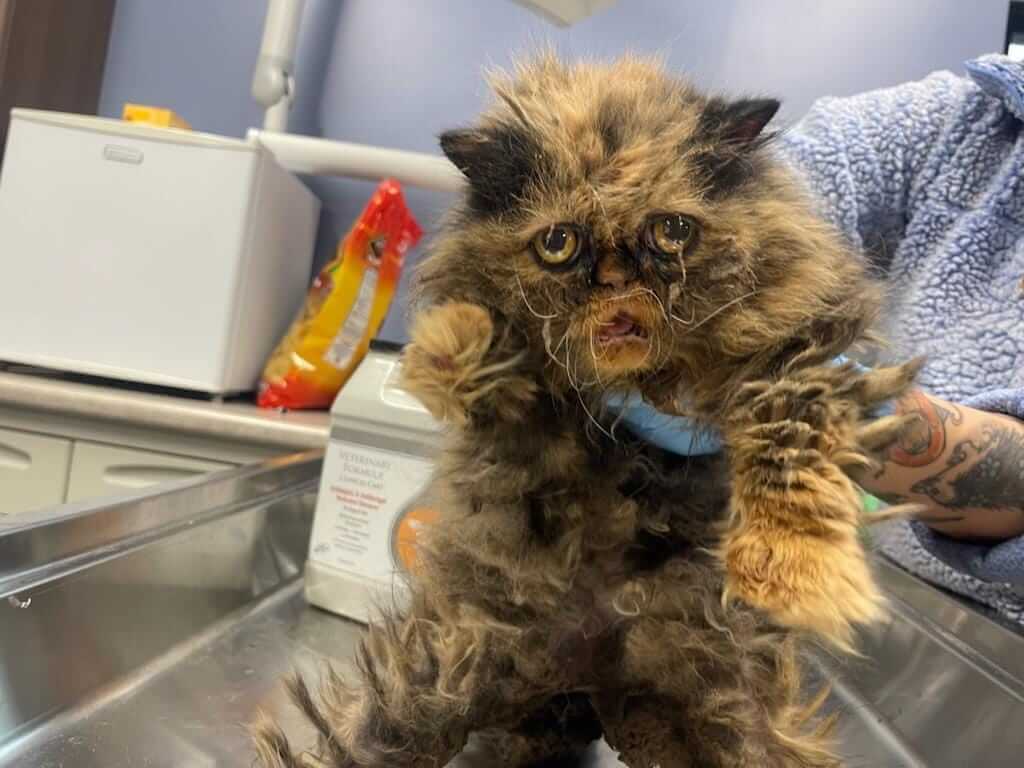 Meet 16-year-old Pig, a cat who entered the Niagara SPCA shelter on Monday to be euthanized because of persistent diarrhea. The request to end Pig’s life was denied, because the senior cat had never been examined by a veterinarian for this condition. When she arrived, she was severely matted and caked with feces; the odor emanating from her was described as “gag worthy.”