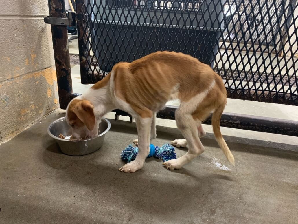 Two puppies cruelly confined to a crate and starved for weeks were rescued by the Arrow Fund just one week ago. Animal Control officers discovered an adult female dog and her two puppies abandoned in a crate; their excrement had piled so high the dogs were barely visible.