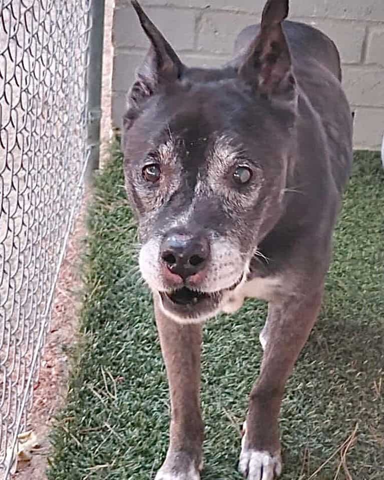 “This sweet old man is sad and confused at the shelter. Needs a rescue or kind adopter to give him a loving home and a soft place to rest his head for however much time he has left. Does not see or hear well but still gets around at a slow pace.”