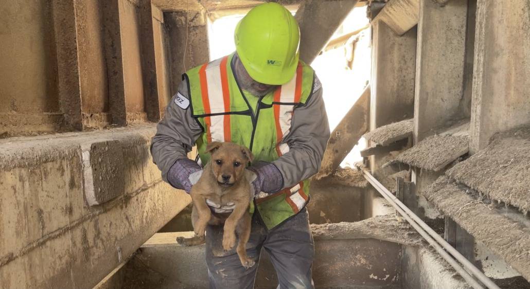 The foreman pointed to the spot, amid the large trash haulers, dump trucks and a tipper where the puppies had been spotted. The area was dangerous; bulldozers and other heavy equipment went in and out. The puppies must have been terrified.