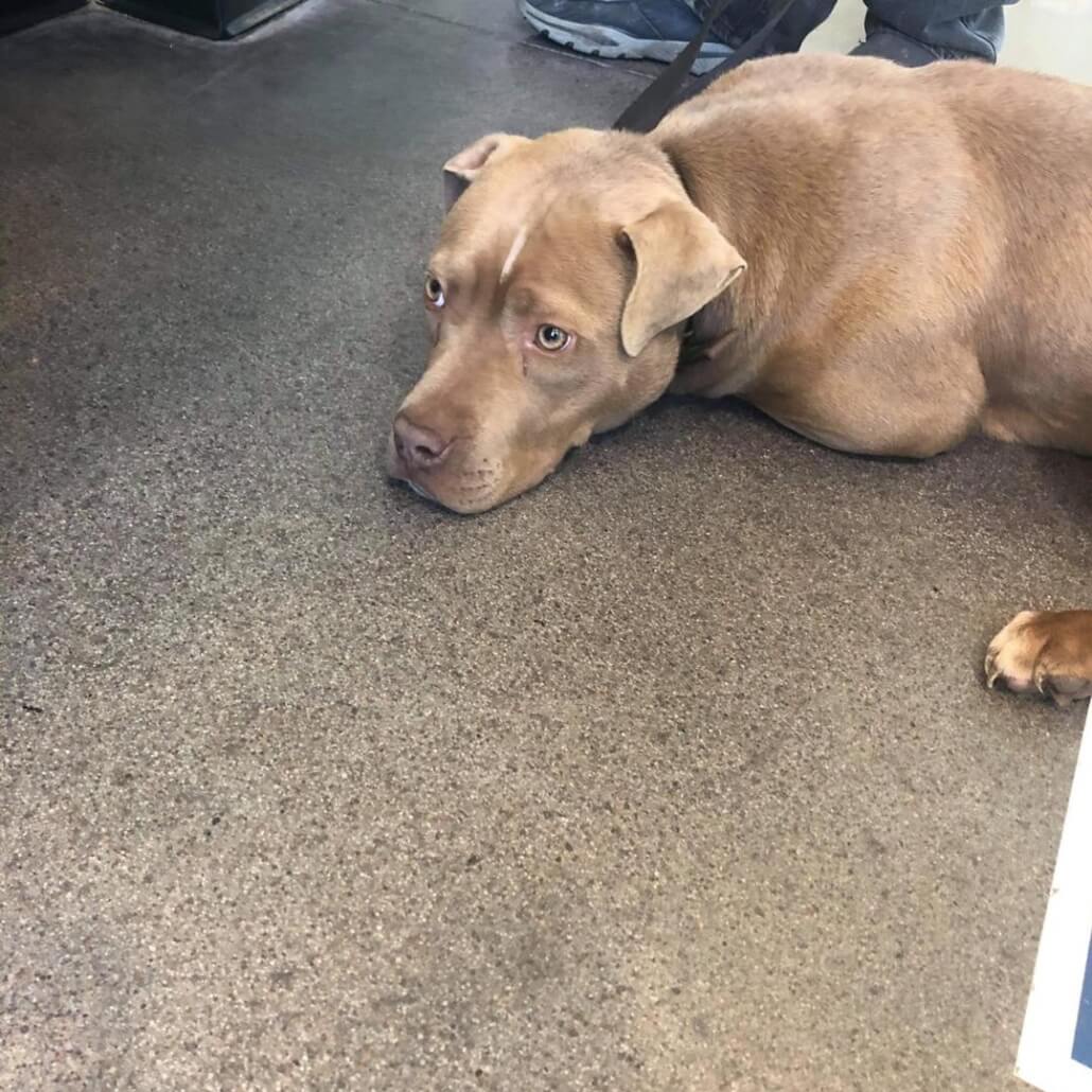 His heartbreaking story quickly went viral. Our hearts cried just looking at the photo with him lying in the lobby of the shelter – ready to be processed. His former family wouldn’t even leave the shelter staff the dog’s name.