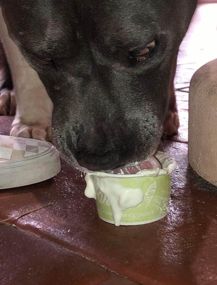 On Sunday night, Mia had her first real treat when she was given Carvel ice cream; it was gone in 30 seconds according to the rescue organization.