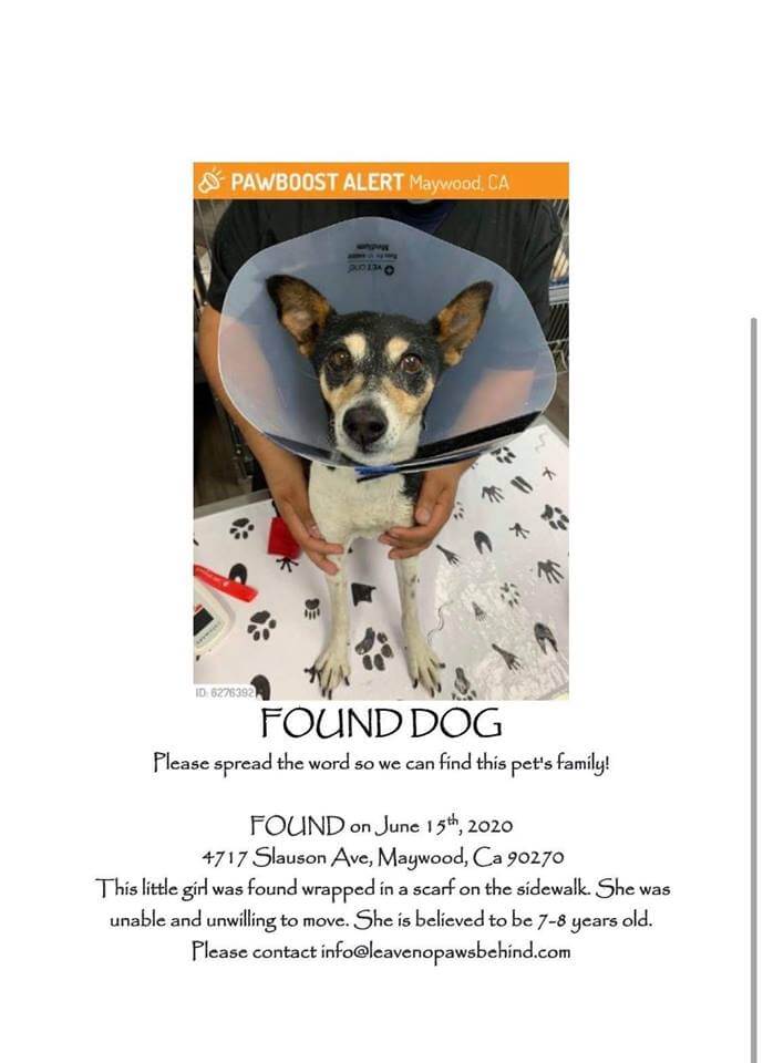 In the Maywood section of Los Angeles, a little dog was found around midnight on Tuesday wrapped in a scarf and left to die on the street. No one has any idea how long the dog had been out there.