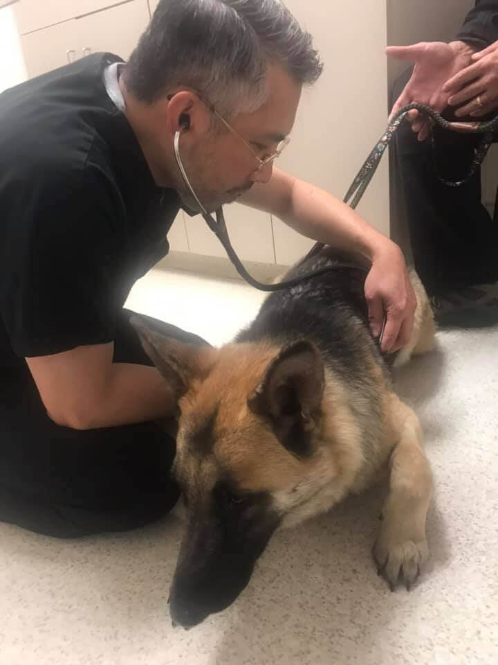“Someone was able to leash him and Linda and Patricia got there and you can see in the video he was scared to death, but Patricia and Linda are so good and gentle. He’s now safe and already had a check up with Dr. Han.”