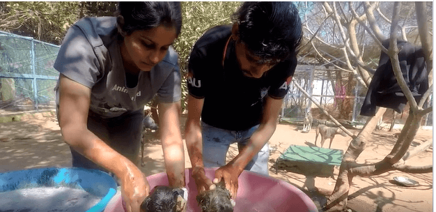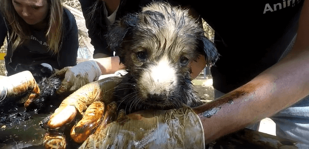 At the hospital, the puppies all looked so pathetic. They were dehydrated and exhausted; their coats were full of tar, and they could barely move. All they could do was to cry. Rescuers used cooking oil to slowly wipe away the hardened tar. The process took hours – meanwhile the puppies were hydrated with droppers, given pain medication and reassured until the tar was removed to free the little ones.