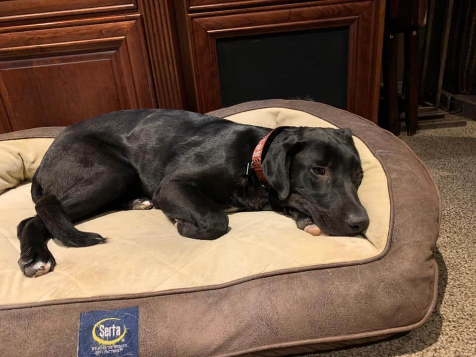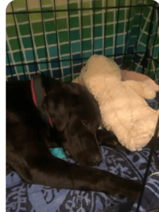 “Megan Allen I came to see Smokey, his new name is Shadow 💕 he’s still very scared. He’s terrified of people and will not lift his head or eat if someone is around. He didn’t pee for almost two days until I tried to take him outside after I saw that he was out of his crate, he was so so scared that when we got to the garage to go outside, we tried to pick him up to tell him it’s okay because he just lays down in fear… he pee’d all over and we were just so happy to see him pee and he ran right back to his safe zone to his crate.