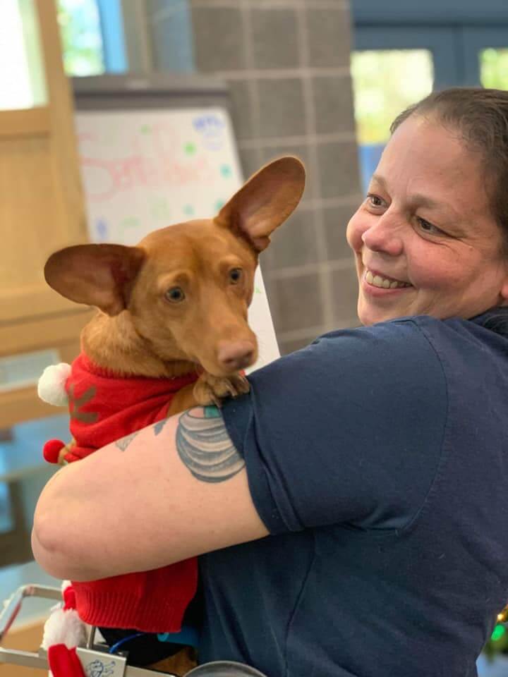 Buddy was discovered in a mobile home park in Slidell; his owners told investigators that their dog had been paralyzed in his rear legs after being shot in early 2019. He was discovered lying in the rain and was rushed to the Lakeshore Veterinarian Hospital by a Good Samaritan. There he received a blood transfusion. Two bullets had been lodged in his back but had not been the cause of the dog’s paralysis. Buddy did have use of his nubs