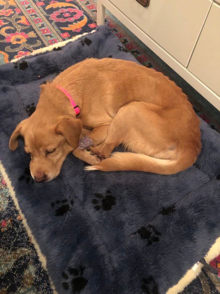A stray dog wandered into a home in Philadelphia early Saturday morning trying to find shelter from a rain storm. She has to be one of the luckiest stray pups in the world – the homeowners adopted her!