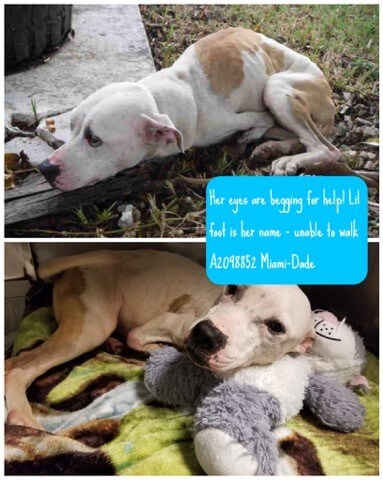 Little Foot is located at Miami-Dade Animal Services, a kill shelter in Miami, FL.