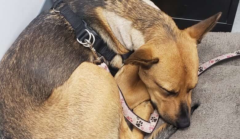 According to the B.C. SPCA, the German shepherd named Hope was found in May 2019 suffering from emaciation, extreme muscle wasting and a deep wound in her neck. The open wound on her neck, crawling with maggots, had become so deeply infected, it exposed her jugular vein and trachea. As a result, the dog’s head became severely swollen, and she was unable to walk.