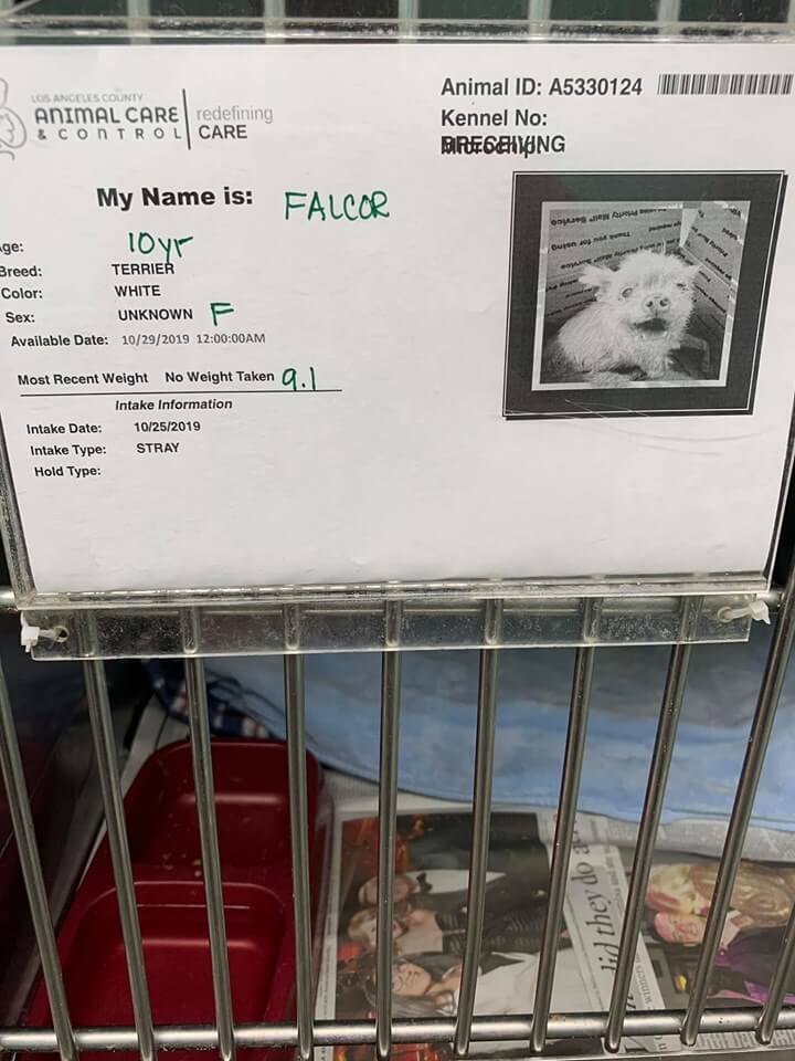 On Friday, Falcor arrived at the Baldwin Park Animal Care Center as a stray. Will someone fall in love with this neglected little dog. The shelter describes her as a 10-year-old terrier who is currently in the medical section receiving extra care.