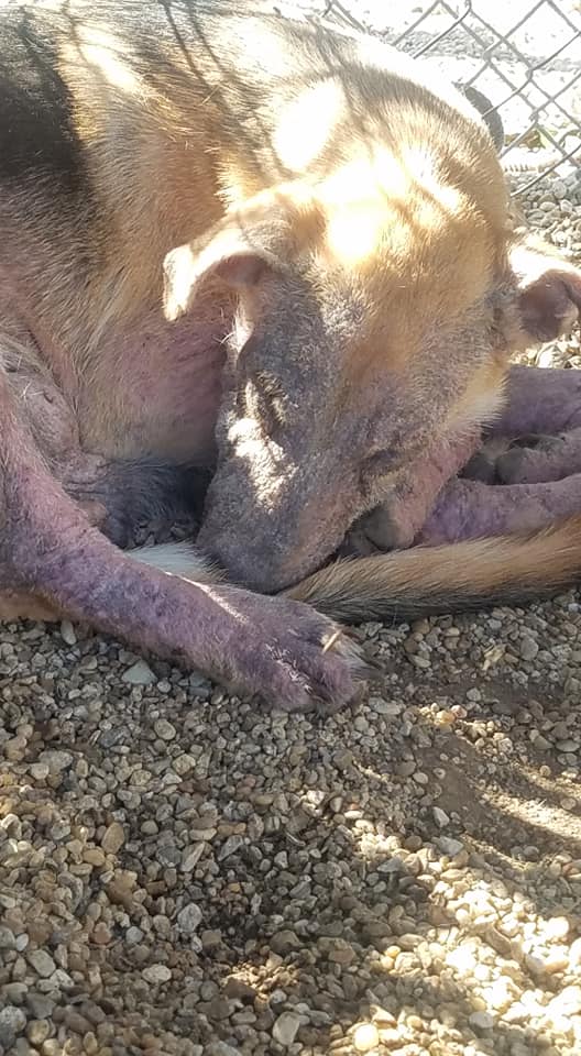 The staff at the St. Landry Animal Rescue in southern Louisiana “thought she was dead … she was just resting. Holy mess.” A two-year-old German shepherd barely recognizable as to her breed, covered in mange with her body on fire from a severe secondary infection was rescued on Tuesday evening.