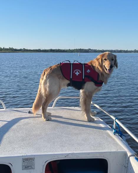 We are so happy to report that Rocky, the dog lost in a boating accident, has been FOUND ALIVE and well with his life vest on! He swam across the Ashley over to a neighborhood in West Ashley and a family saw him chasing a raccoon around their backyard and recognized him!