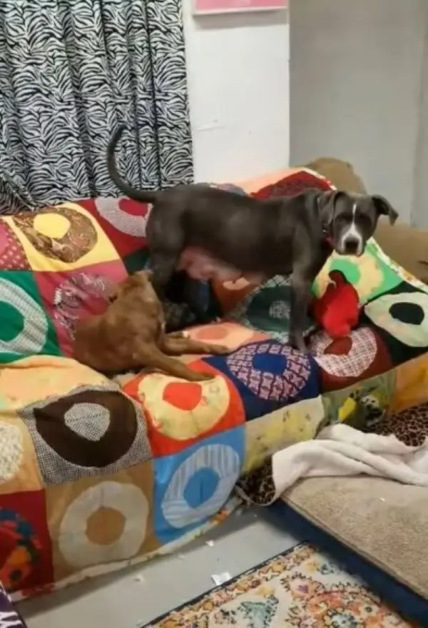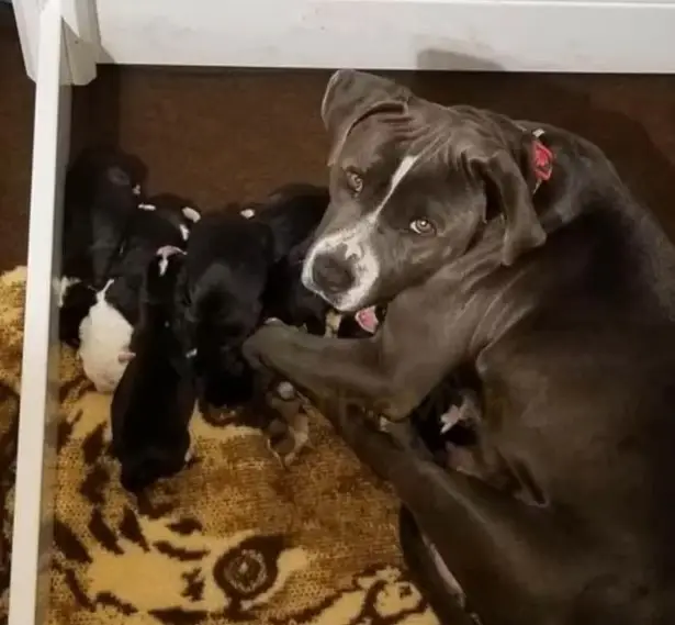 Lotus gave birth to eight healthy puppies. Her maternal instincts kicked in, nurturing her babies with unwavering devotion.