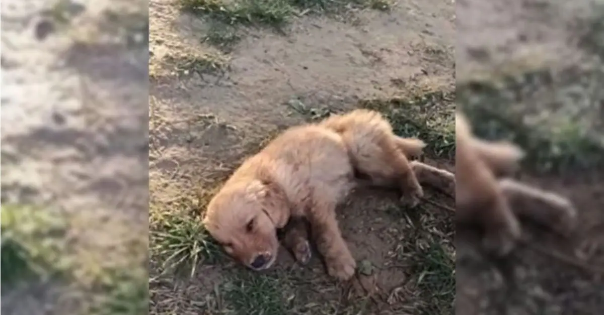 In a bustling city park, a group of rescuers heard a faint cry amidst the joyful chatter of people enjoying their day. Investigating the source of the sound, they discovered a tiny, injured puppy lying motionless near a tree. The puppy’s condition was dire, with wounds covering his leg and a look of despair in his eyes.