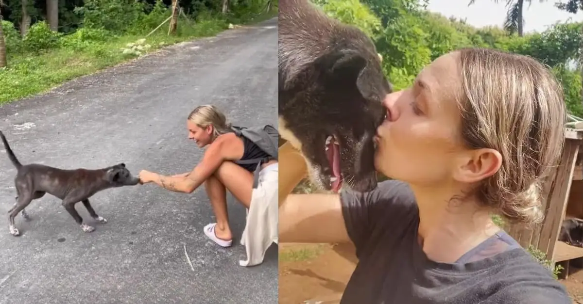 Maddie, a stray dog, yearned for human affection but was too scared to trust. Her world began to change when she met Selina, a compassionate dog rescuer.