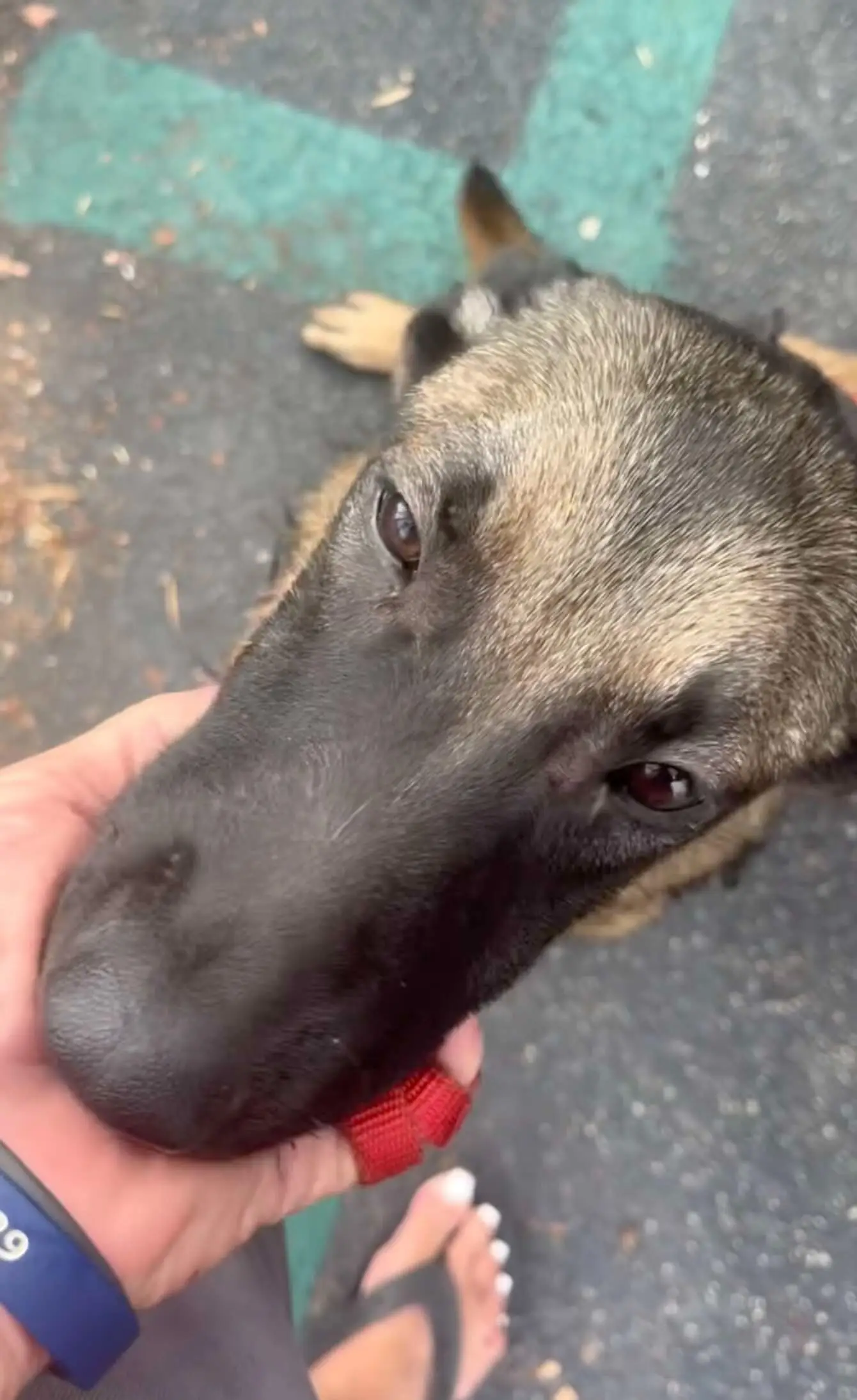 The other day, a distressing scene unfolded in Los Angeles. A woman, Suzette Hall, founder of Logan’s Legacy 29, witnessed a family abandon their beloved German shepherd-Malinois mix, Melody, in an empty parking lot. The family, visibly upset, tied Melody to a tree, provided her with food, and placed a muzzle on her before walking away. The dog, overwhelmed with grief, tried desperately to follow her family but was held back by the tether.