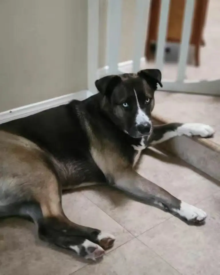 A DNA test revealed Porter’s surprising breed composition: 50% Husky, German Shepherd, Pit, and a small percentage of Border Collie. This unusual combination explained his distinctive appearance and personality traits.