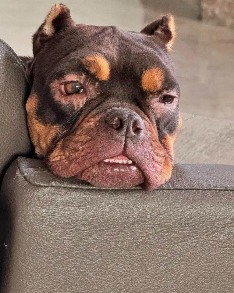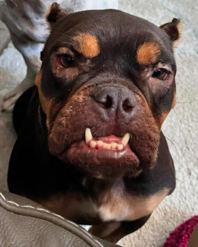 Frankie’s health issues included a short nose, thickened intestines, bad teeth, and cropped ears. These problems were a direct result of overbreeding, making her life incredibly difficult.