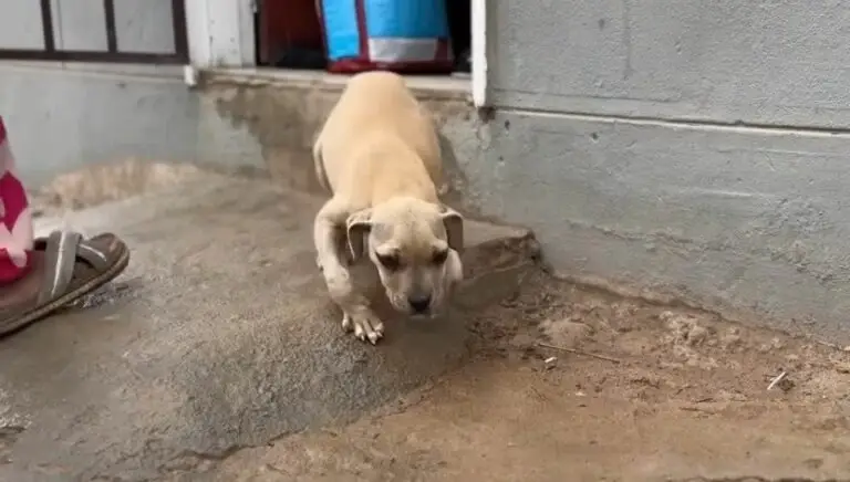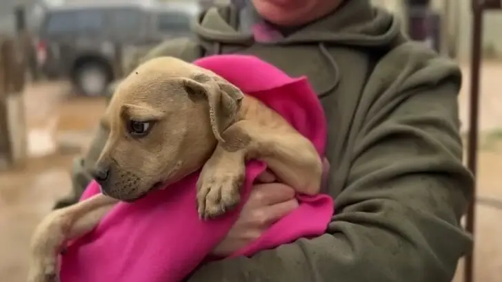 Rescuers discovered a puppy with a wobbly gait and politely asked the family to hand the dog over so they could examine and treat it