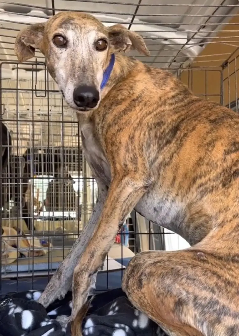 Steven, a young Spanish Greyhound, was found living in deplorable conditions at a crowded dog compound. His once-bright spirit was dimmed by fear and neglect. The trauma of his past had left him a shell of his former self, cowering in the corner of his kennel, trembling with anxiety.