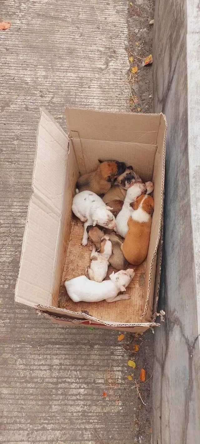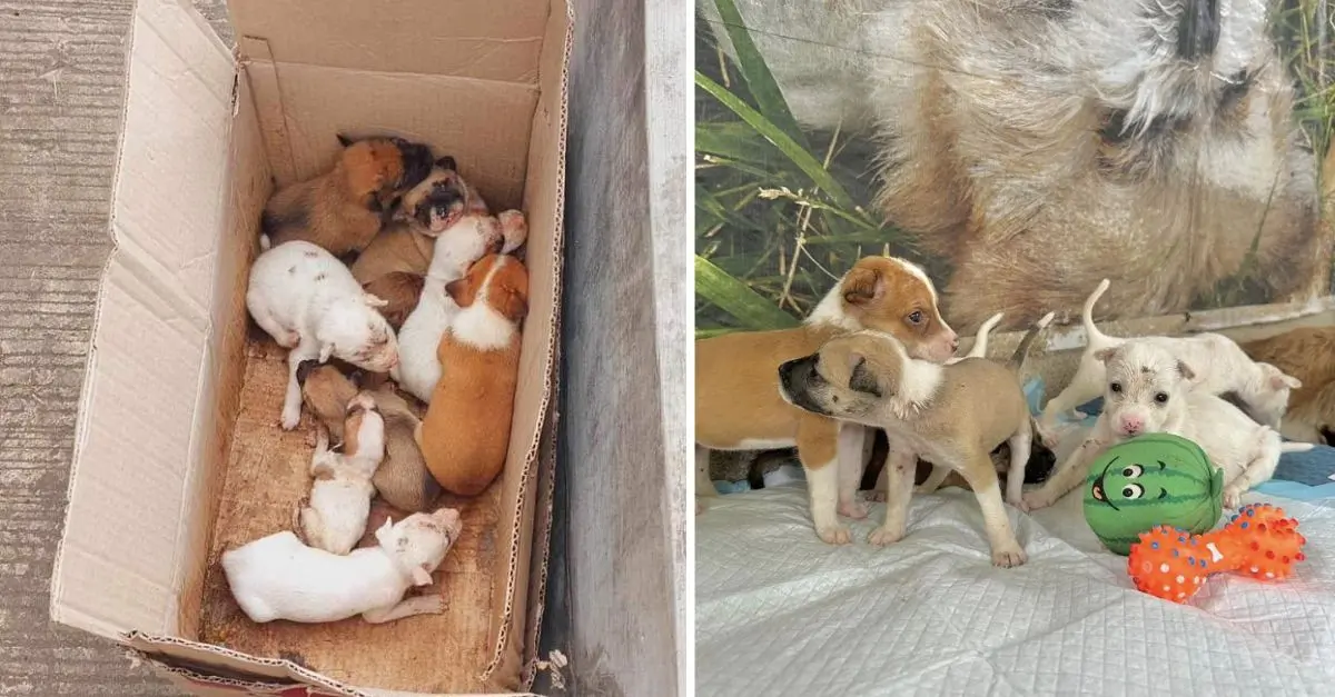A group of cyclists stumbled upon a scene of unimaginable cruelty. Inside a discarded cardboard box, nine tiny puppies were left to fend for themselves. Weak, hungry, and infested with fleas, their survival seemed bleak.