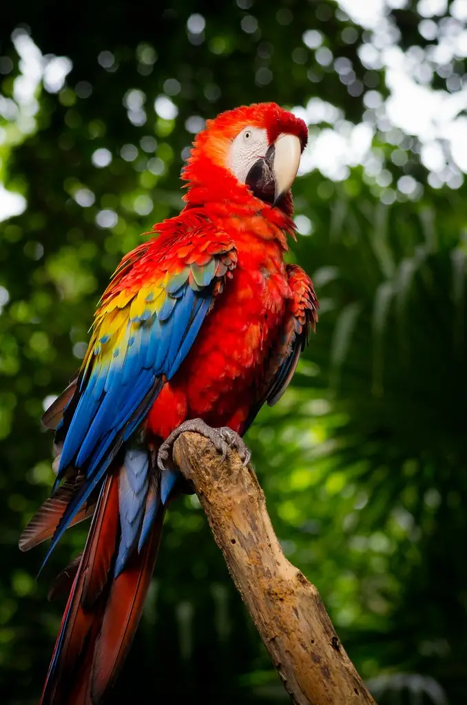 The Scarlet Macaw is without a doubt one of the most beautiful members of the macaw family. They prefer to inhabit the humid evergreen forests across Central and South America.