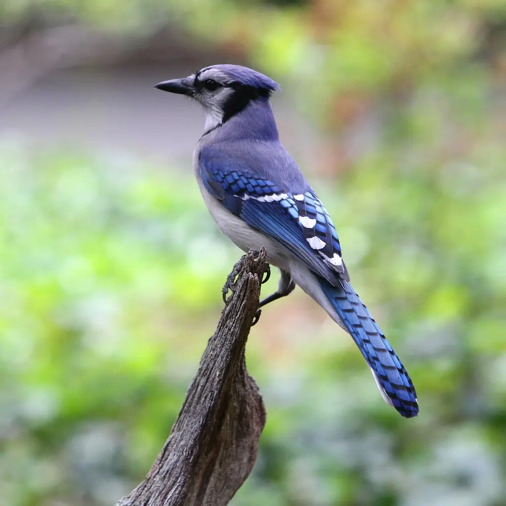 The blue jay (Cyanocitta cristata) is a small colorful bird native to North America. They are predominantly blue in color with a white chest and underparts, and a blue crest; they have a black, U-shaped collar around the neck and a black border behind the crest. Resident populations are found in Newfoundland, Canada, with breeding populations found across some parts of southern Canada.