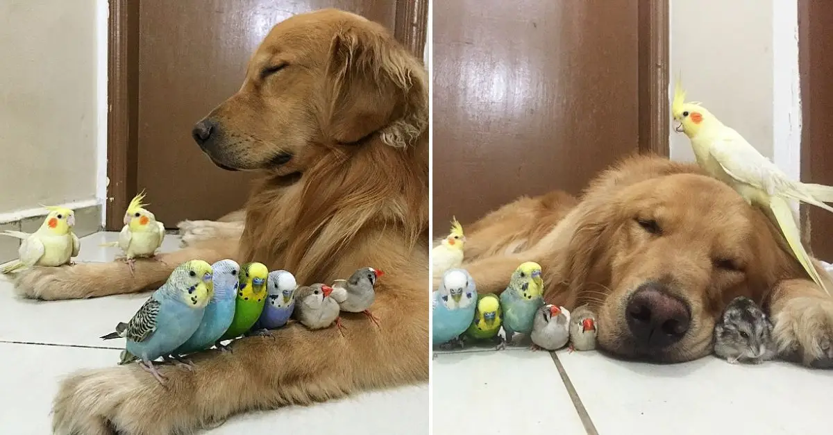 Bob, a golden retriever, has captured hearts worldwide with his heartwarming bond with a diverse group of animal companions. This gentle giant shares his home with eight birds and a hamster, forming an unlikely but endearing family.