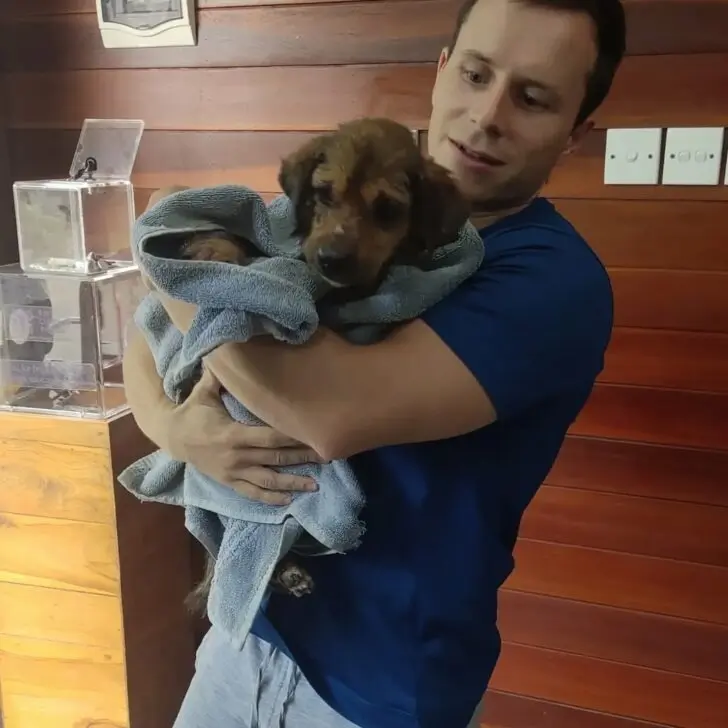 A kind woman spotted the sick and lost pup and felt compelled to help. She managed to coax the frightened Pete into her office and contacted dog rescuer Aron Hughes. Hughes immediately agreed to help and picked up Pete. He was deeply saddened by Pete’s condition: a severe skin condition and a deep-seated fear of humans, flinching at every touch.