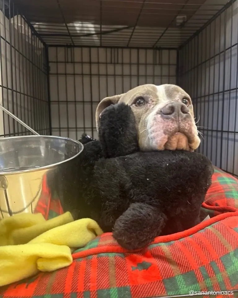Martha is currently residing in her foster home and continuing to receive heartworm treatment. She is gradually gaining weight and strength. She still enjoys playing with toys, and the teddy bear that her rescuer gave her remains her favorite.