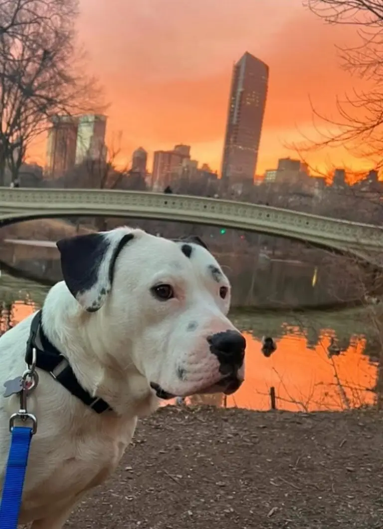 He makes new friends, relishes cuddles with his mom and other humans, takes cozy naps on the most comfortable couch imaginable, and enjoys breathtaking sunsets with Carlyn in Central Park.