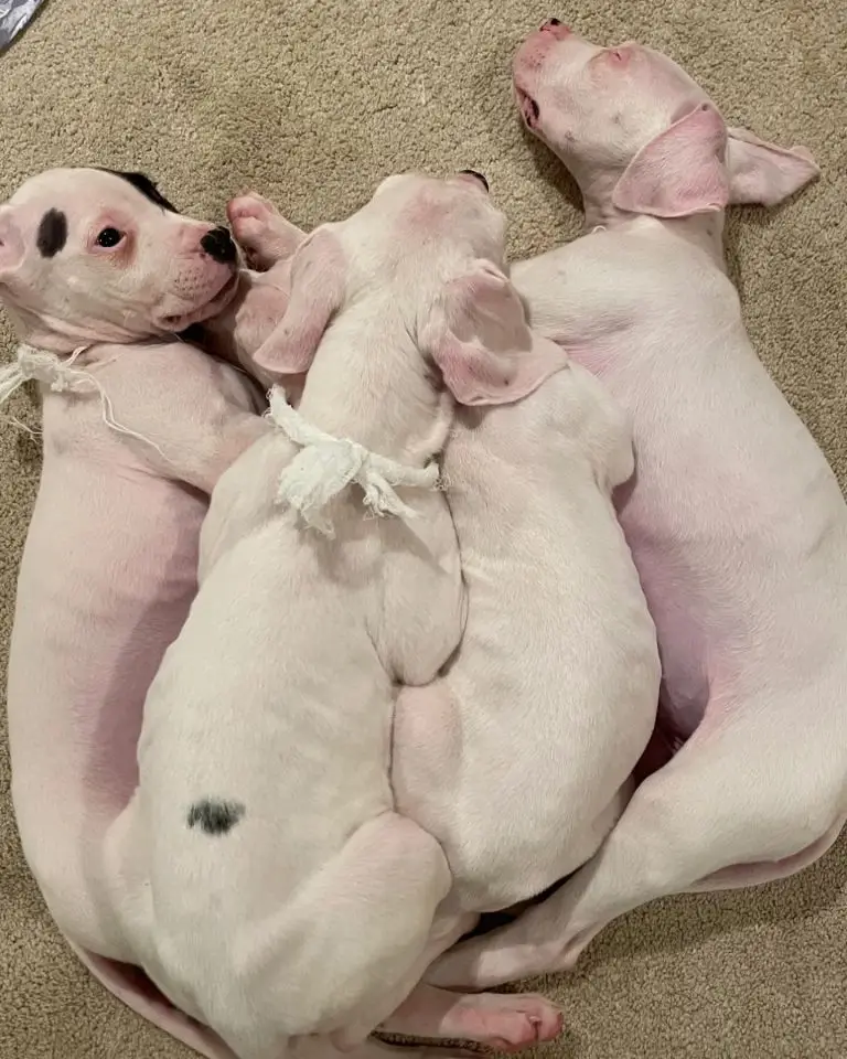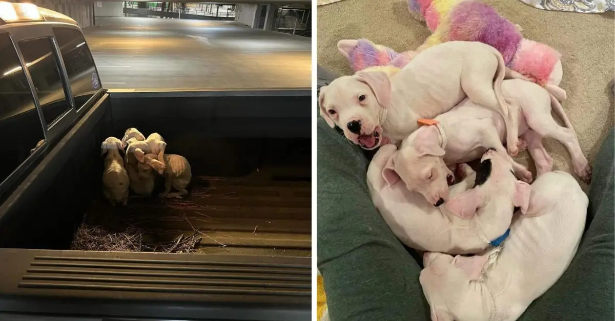 Four little Dogo Argentino puppies experienced this heartbreaking reality firsthand when they were dumped in a truck bed at night by cold-hearted individuals.