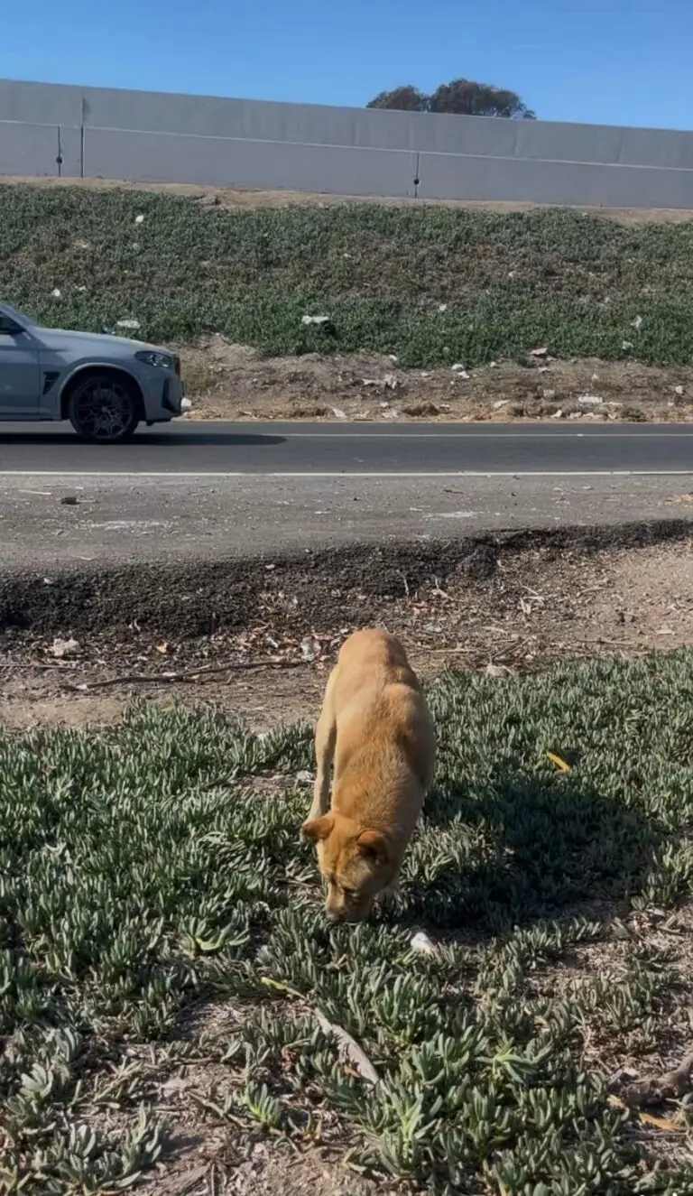 Take this particular dog, for instance. He had taken up residence next to a busy freeway entrance, a location with a constant flow of vehicles. As fate would have it, a kind-hearted individual happened to spot him there and decided to intervene.