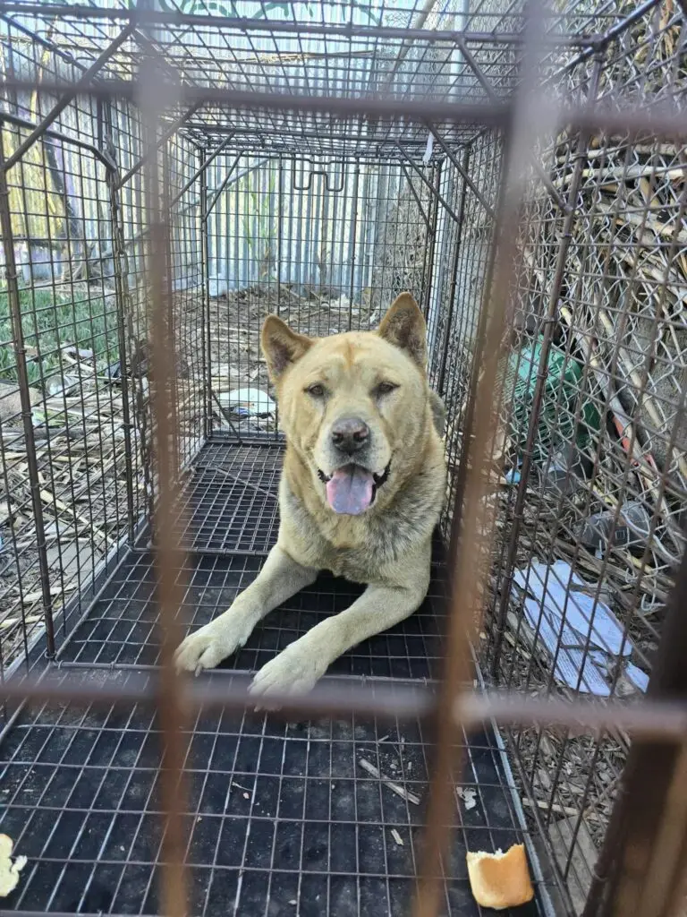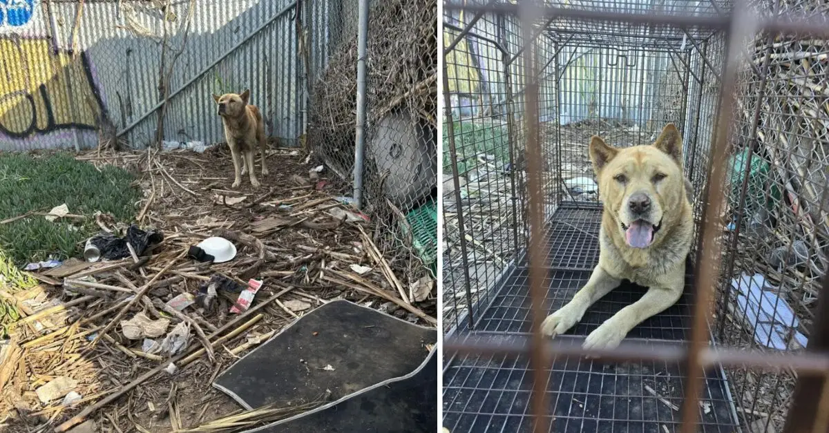 They brought a heavy-duty animal trap with them, anticipating that it might be necessary to safely contain him. However, when they arrived at the location, the pup immediately ran towards them, greeting them with evident excitement.