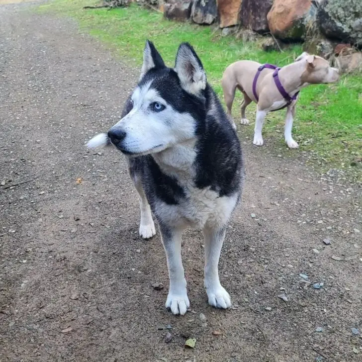 Before being rescued by West Coast Cane Corso Rescue, Guy had been surrendered to a high-euthanasia shelter by his previous owners, his future hanging precariously in the balance. From there, this striking Husky pup was moved to a questionable rescue operation in a remote area of Northern California, where he was housed alongside more than thirty other Huskies in what tragically became a high-profile animal cruelty case that spanned months.