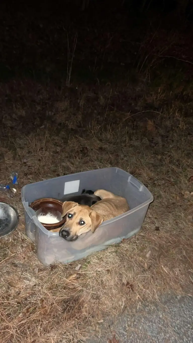Ginger, an adorable and devoted mother dog, experienced this devastating betrayal firsthand. Her cruel former family subjected her and her vulnerable newborn puppies to an act of unimaginable callousness. They were crammed into a flimsy plastic bin and dumped on the side of a busy highway under the cloak of night, their fate left hanging precariously in the balance.