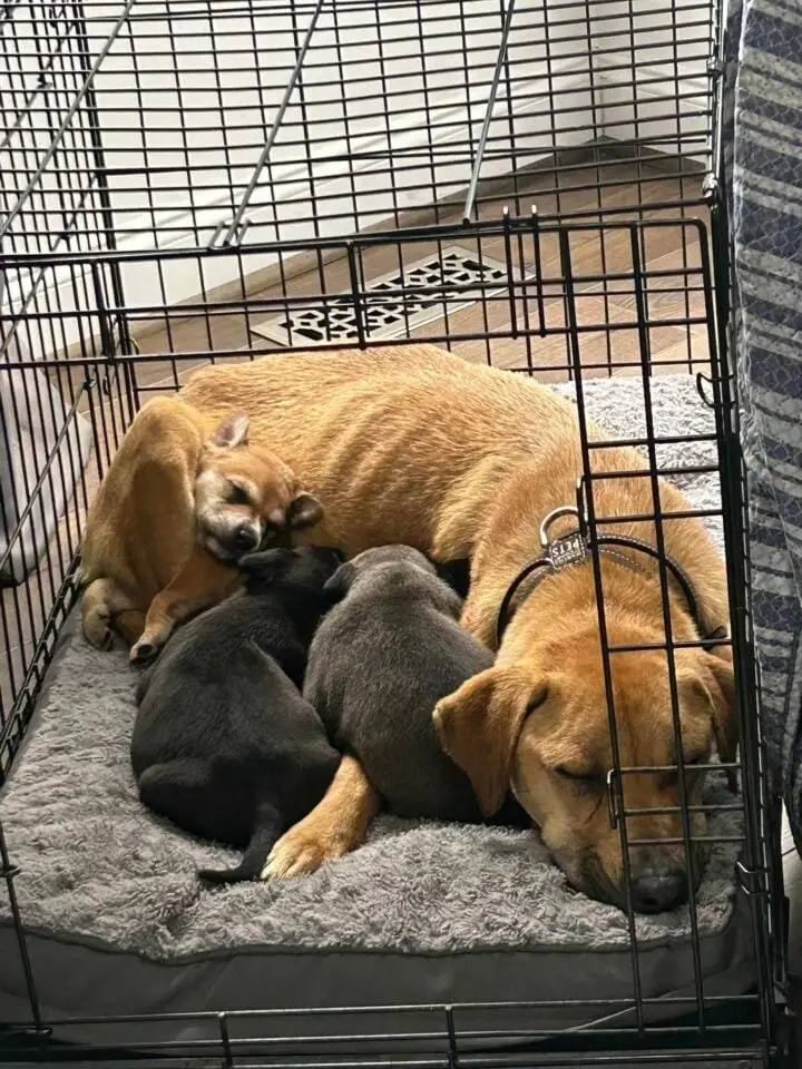 Upon arriving at the scene and witnessing the sad mother dog’s silent cries for help, the rescuer’s heart sank. She carefully gathered the trembling canine family into her vehicle, providing them with immediate warmth and safety. Ginger and her three puppies, later lovingly named Ceyenne, Poppy, and Nutmeg, finally received a much-needed, nourishing meal in the comfort of their rescuer’s home. They spent their first peaceful night in what felt like an eternity, a stark contrast to the terrifying ordeal they had just endured.