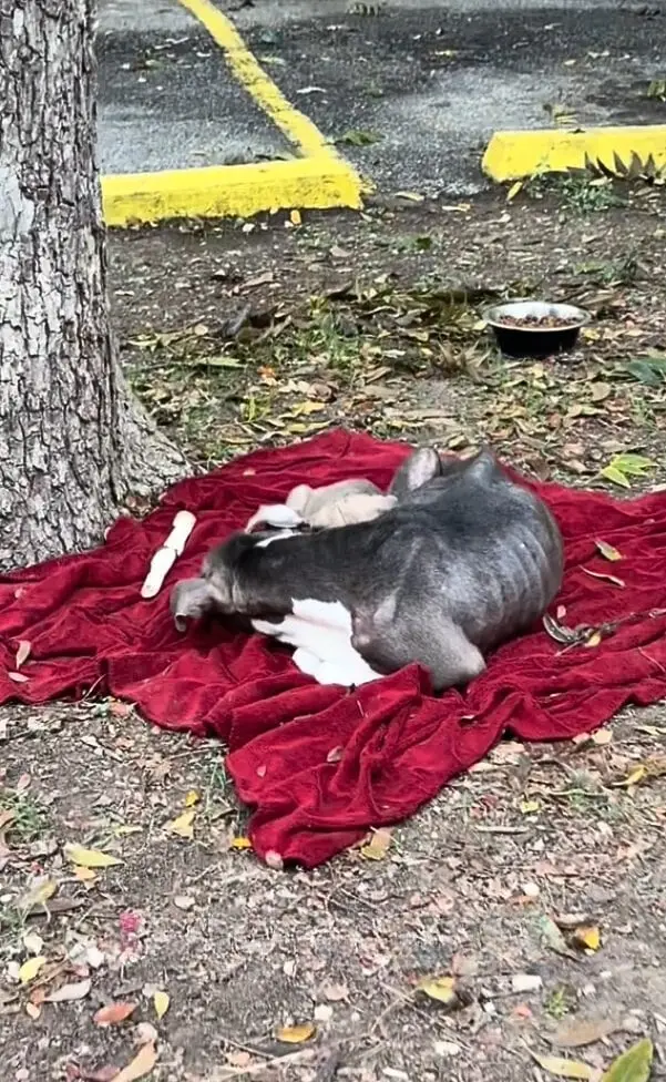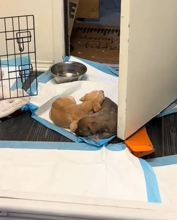 Huddled close to their mom, the pups instinctively sought her love and protection, their small forms a testament to their vulnerability. Nova, their devoted mother, felt her heart ache with a profound sadness as she instinctively wrapped her body around her babies, her own fear and uncertainty overshadowed by an overwhelming need to comfort them and provide what little warmth she could in their desolate situation.