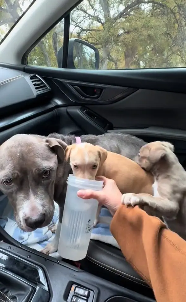 After providing the hungry mother with more food, McKee carefully loaded the small canine family into her car, offering them a safe and warm haven away from the elements. She also offered them water, which they eagerly drank, their thirst evident. Nova, in a touching display of maternal devotion, allowed her puppies to drink first, her eyes fixed on McKee with an expression of profound gratitude, a silent acknowledgment of the kindness being extended to her precious offspring.