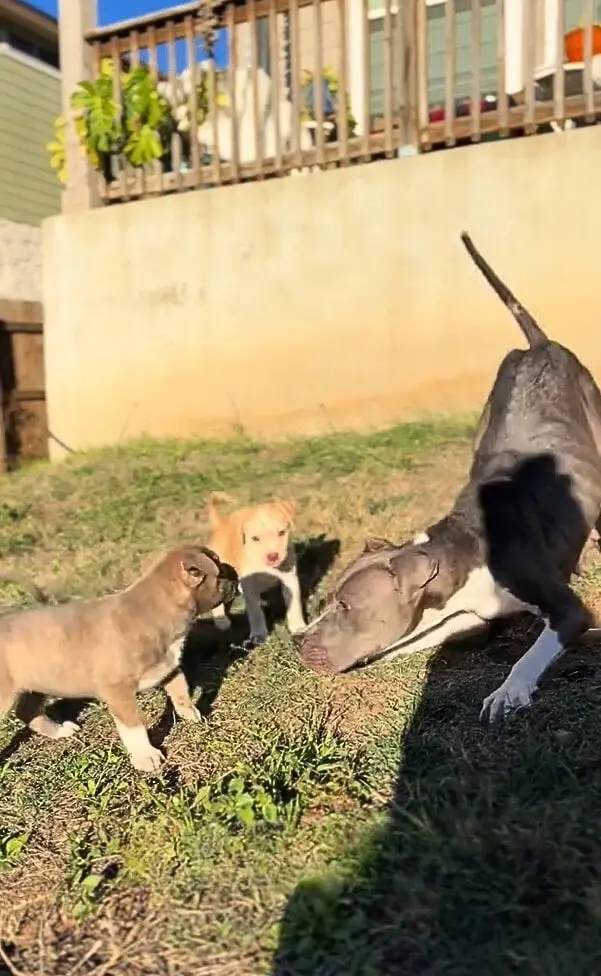 Nova, relieved of the constant stress of survival, began to eat nutritious food, her body slowly starting to heal and regain strength. Her primary focus remained on caring for her beloved babies, ensuring their comfort and well-being. Gradually, as she regained her physical strength and sensed the security of their new surroundings, a sense of peace settled over her, a stark contrast to the fear and uncertainty of the park. Free from the immediate threat of the elements and the gnawing pangs of hunger, Peaches and Tank began to exhibit the playful energy of healthy puppies, joyfully interacting with their devoted mother.