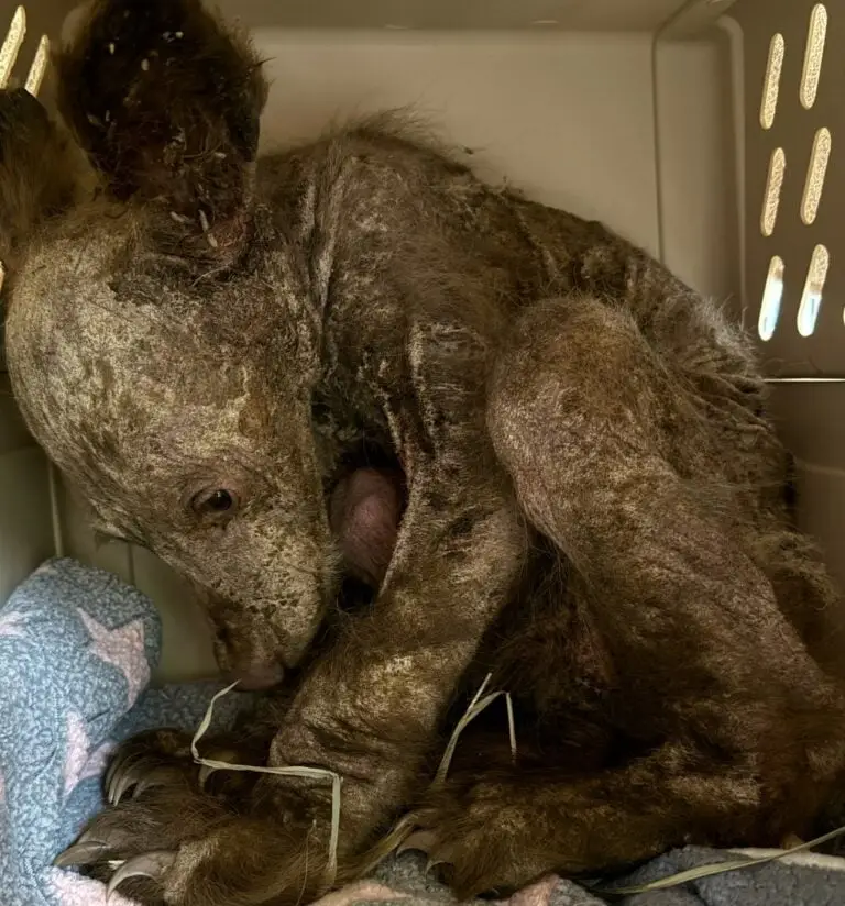 When the dedicated team at Gold Country Wildlife Rescue (GCWR) first encountered a young black bear cub in the North Auburn area of California, the severely compromised condition of the animal left them in disbelief. The tiny bear appeared gravely ill and alarmingly malnourished, his small body bearing the visible signs of significant suffering. Further assessment revealed that he was also critically dehydrated, anemic, and battling multiple skin infections, among a host of other serious health issues.