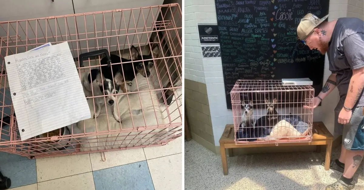 As the staff member approached the small pink crate, their eyes fell upon a note carefully placed on top. With trembling hands, they unfolded the paper and began to read the words penned by the dogs’ owner. The message conveyed a heart-wrenching tale of unforeseen hardship, explaining that it was their last day in their home and that they had nowhere else to turn for the care of their beloved dogs. “I love them so much. Please take care of them and find them a nice home,” a portion of the note poignantly read, revealing the depth of the owner’s affection and the agonizing nature of their decision.