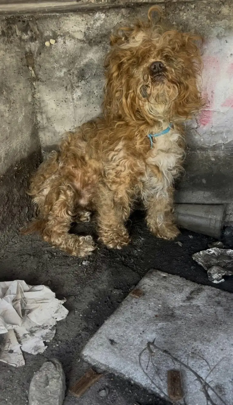 The initial assessment of the little pooch’s condition painted a grim picture. His small body was burdened by an extreme case of matting, thick clumps of tangled fur that covered him from head to tail, undoubtedly causing him a significant amount of pain and discomfort with every movement. Fortunately, amidst his physical distress, there was a small glimmer of hope: kind-hearted individuals from the area had noticed his presence and had thoughtfully left out food for him, ensuring that he could at least satisfy his hunger and sustain himself.