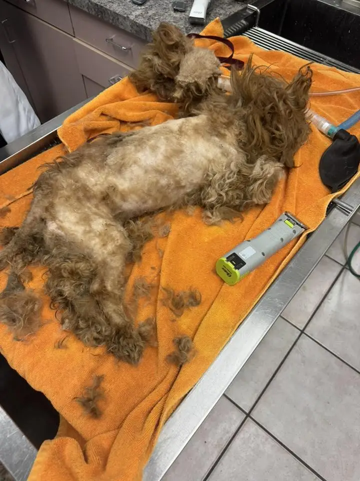 With gentle patience and unwavering compassion, Suzette Hall showered Lambert with soft words, gentle touches, and reassuring kisses, hoping that these small gestures of kindness would begin to penetrate his wall of fear and allow him to feel a flicker of safety. Soon after his rescue from the sewer, Suzette rushed Lambert to the veterinarian’s office, where he underwent a comprehensive medical assessment to determine the full extent of his physical condition. It was during this examination that the true severity of his neglect became starkly apparent. The matting on his fur was so extensive and severe that the veterinary team determined the only humane course of action was to shave it away completely. Although the process was undoubtedly uncomfortable and likely frightening for the already traumatized Lambert, he instinctively seemed to understand that this necessary step was crucial for his well-being and would ultimately lead to a life free from the painful burden he had been carrying.