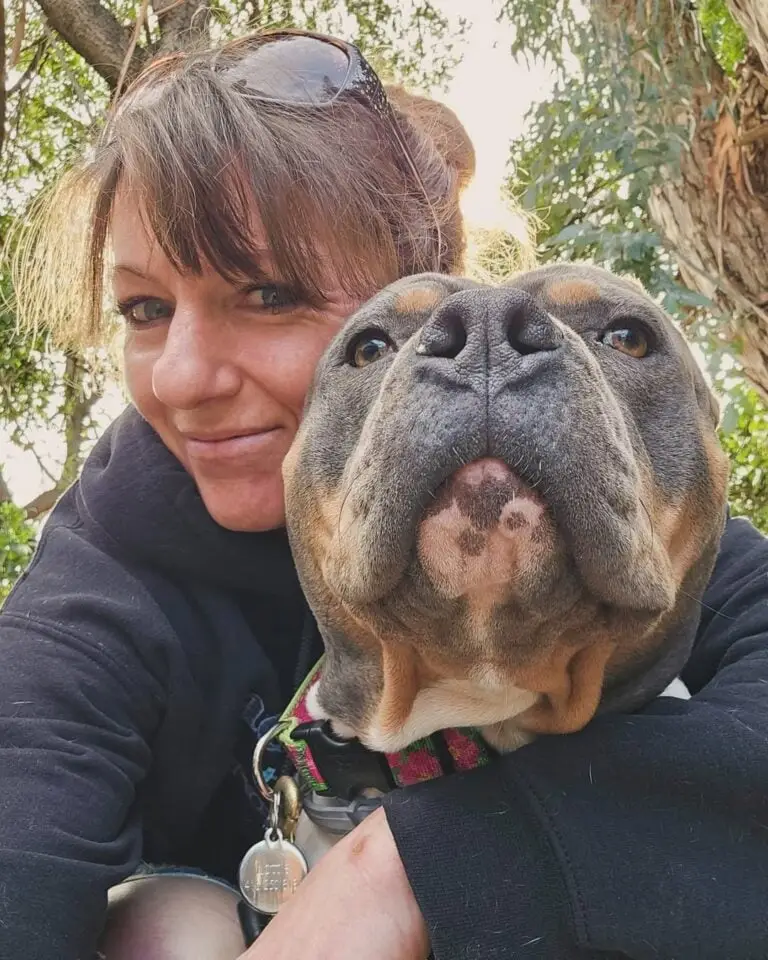 Finally, Lottie was brought to a California shelter, marking the beginning of a new chapter, one she couldn’t have possibly imagined. Little did she know that within a mere two months, she would encounter her soulmate. Marisa Elbert, a compassionate woman who already shared her home with a dog named Andy, proved to be the perfect match for Lottie’s wounded spirit. Marisa was still grieving the recent loss of her beloved dog, Maisy, when she saw Lottie. The resilient Bully girl reminded Marisa so much of her late companion, sparking an immediate connection. After a few gentle meet-and-greets, Marisa made the heartfelt decision to take Lottie home, hoping to offer her the loving and secure life she so desperately deserved. To everyone’s surprise, Lottie didn’t need time to adjust; it was as if she instinctively knew she was finally home, embracing every single moment of her newfound comfort and security.
