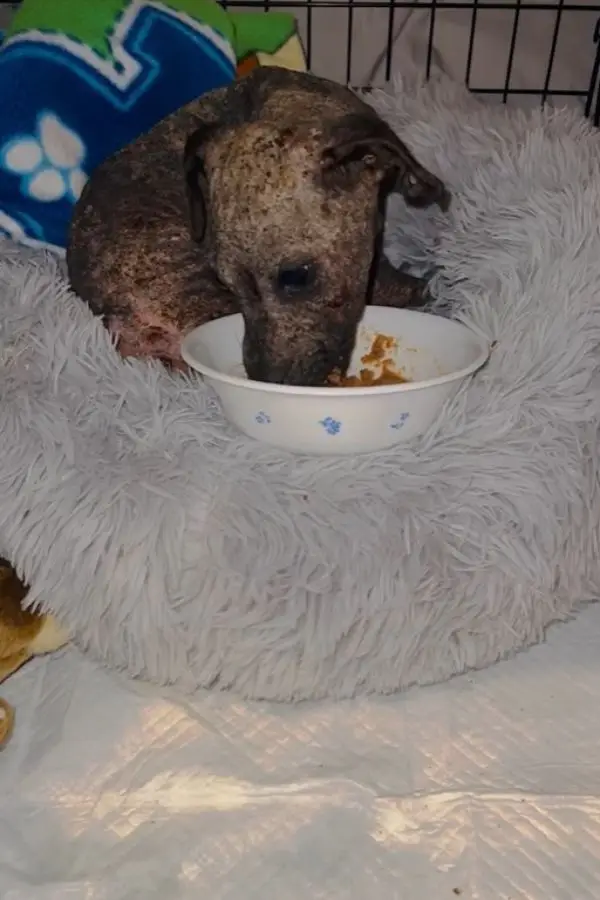 With gentle care, the couple scooped up the fragile puppy and transported him to the Orangeburg County Animal Control and Shelter. However, the shelter was already struggling with overcrowding, a common challenge faced by animal welfare organizations. Recognizing the puppy’s urgent medical needs and the limitations of their resources, the shelter staff made a heartfelt plea for help on their Facebook page, reaching out to the wider community in hopes that a rescue organization would step in to provide the specialized care the little pooch required. The puppy was so severely ill that he lacked the strength even to stand or walk, highlighting the critical nature of his situation. Fortunately, Labor of Love Transport Rescue, an organization dedicated to giving vulnerable animals a second chance, answered the call. They promised to take the puppy under their wing, offering a glimmer of hope in his darkest hour. A compassionate volunteer within the rescue organization immediately agreed to foster him, selflessly offering his home and care. As the kind-hearted man drove to pick up the ailing puppy, a sudden and violent thunderstorm erupted, a dramatic backdrop to the fragile life he was about to take into his care. Upon the puppy’s arrival at the rescue’s facility in Greenville, South Carolina, the staff, recognizing the symbolic nature of his tumultuous journey, decided to name him Baby Thunder. The dedicated team then rushed Baby Thunder to a veterinary hospital, where he was diagnosed with a severe and debilitating case of mange. His condition was so critical that the medical professionals were uncertain if the tiny warrior would even survive. Baby Thunder was immediately started on intensive treatment, the doctors fighting tirelessly to stabilize his fragile body and give him a chance at life.