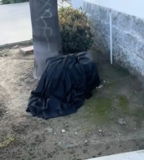 It was 8:30 in the morning when a dedicated staff member arrived for work at Pet Rescue Solutions in South El Monte, California. As she approached the building, a shocking sight immediately caught her attention. Underneath a tree near the shelter building lay a strange black blanket, seemingly covering something.